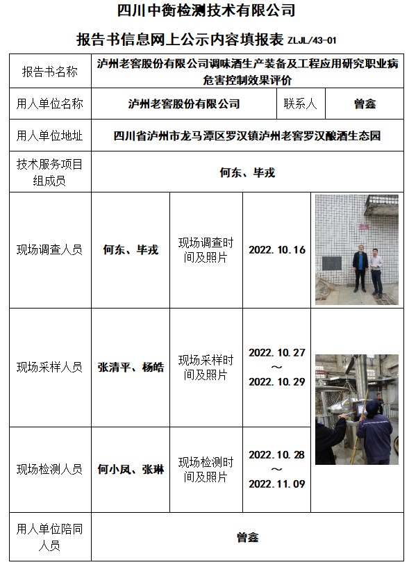 泸州老窖股份有限公司调味酒生产装备及工程应用研究控制效果评价