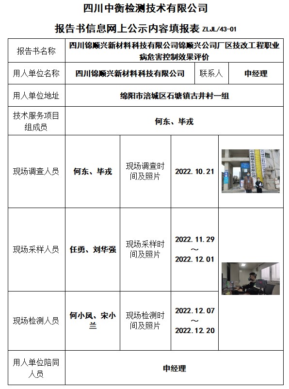 四川锦顺兴新材料科技有限公司锦顺兴公司厂区技改工程控制效果评价