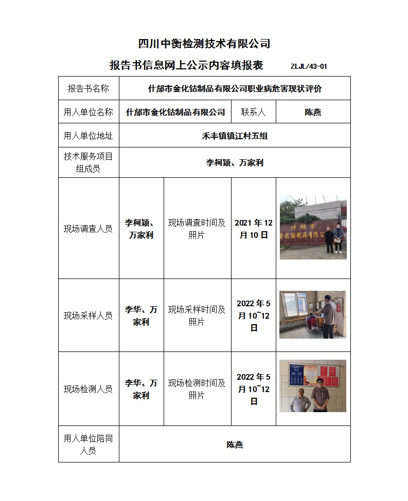 什邡市金化钴制品有限公司 职业病危害现状评价报告书