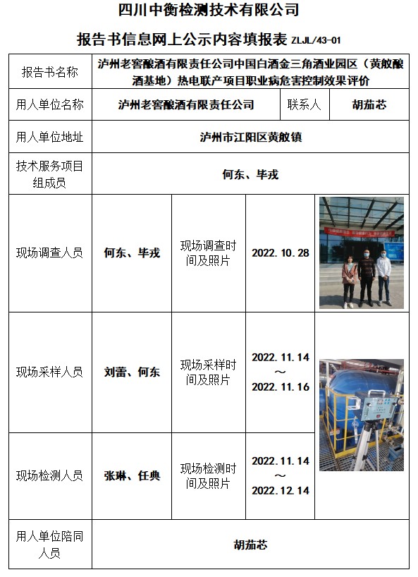 泸州老窖酿酒有限责任公司中国白酒金三角酒业园区(黄舣酿酒基地)热电联产项目控制效果评价