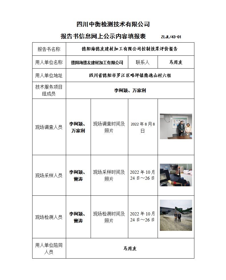 德阳海德友建材加工有限公司 矿产品、道渣加工项目 职业病危害控制效果评价报告书