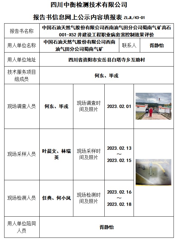 中国石油天然气股份有限公司西南油气田分公司蜀南气矿高石001-X52井建设工程控制效果评价