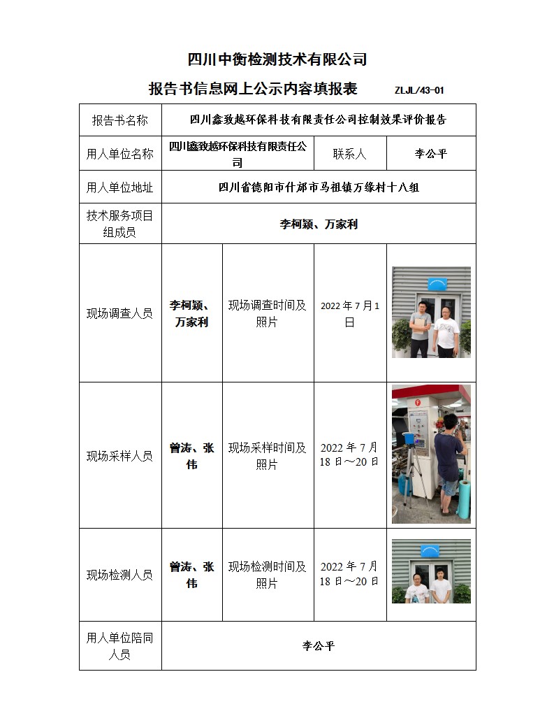 四川鑫致越环保科技有限责任公司 鑫致越环??萍妓芰现破芳庸は钅?职业病危害控制效果评价报告书