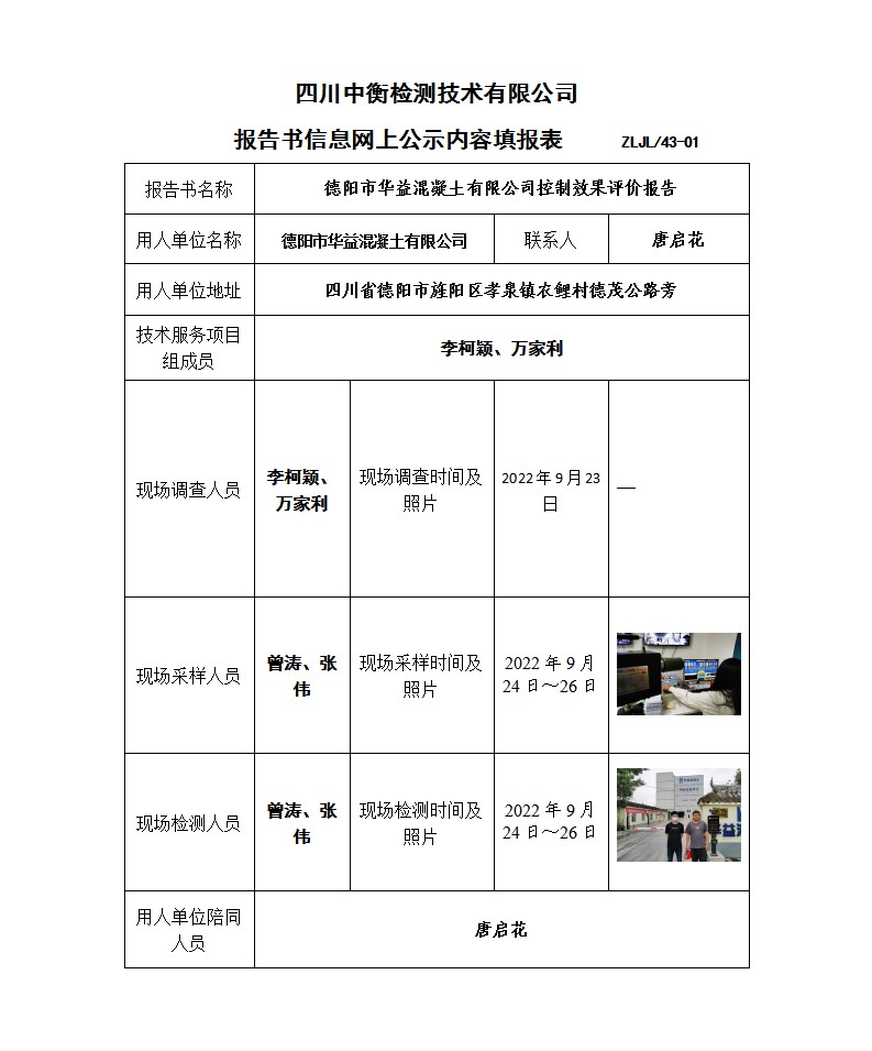 德阳市华益混凝土有限公司 生产线技术升级技改项目 职业病危害控制效果评价报告书