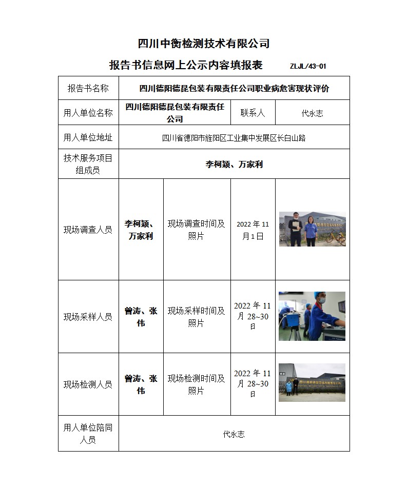 四川德阳德昆包装有限责任公司 职业病危害现状评价报告书