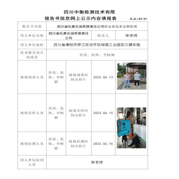 四川省玖鼎石油有限责任公司定期检测