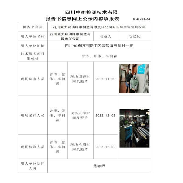 四川蓝大玻璃纤维制造有限责任公司定期检测