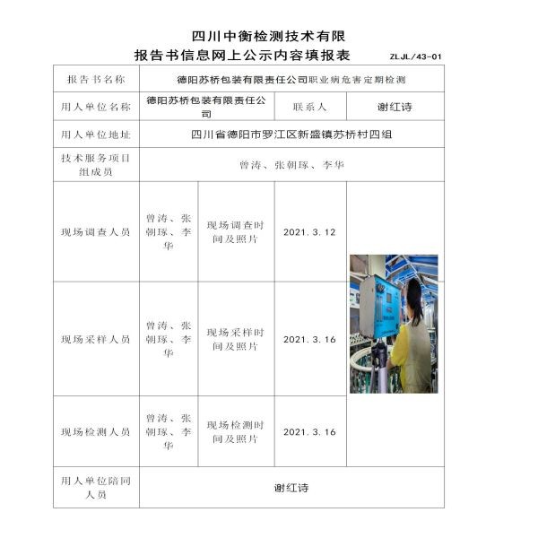 德阳苏桥包装有限责任公司职业病危害定期检测