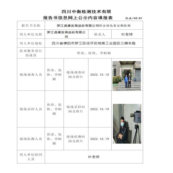 罗江县建发商品砼有限公司定期检测