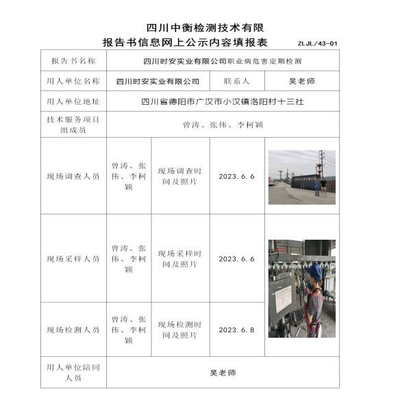 四川时安实业有限公司定期检测