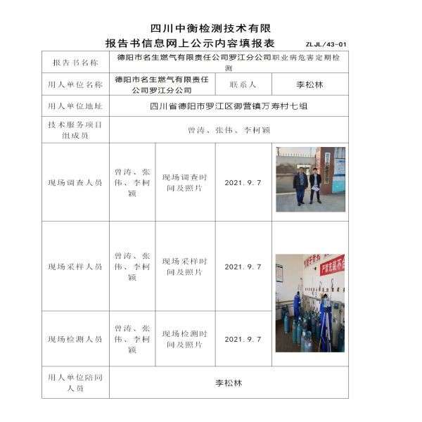 德阳市名生燃气有限责任公司罗江分公司定期检测