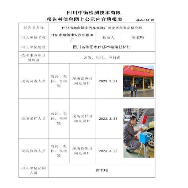 什邡市皂角捷安汽车修理厂定期检测