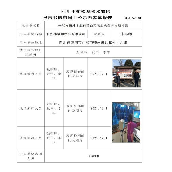 什邡市福坤木业有限公司定期检测