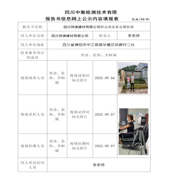 四川梓源建材有限公司定期检测