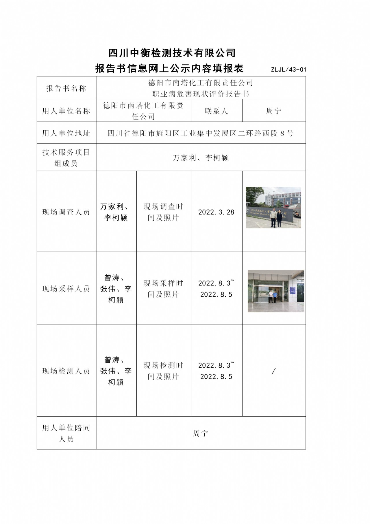德阳市南塔化工有限责任公司职业病危害现状评价