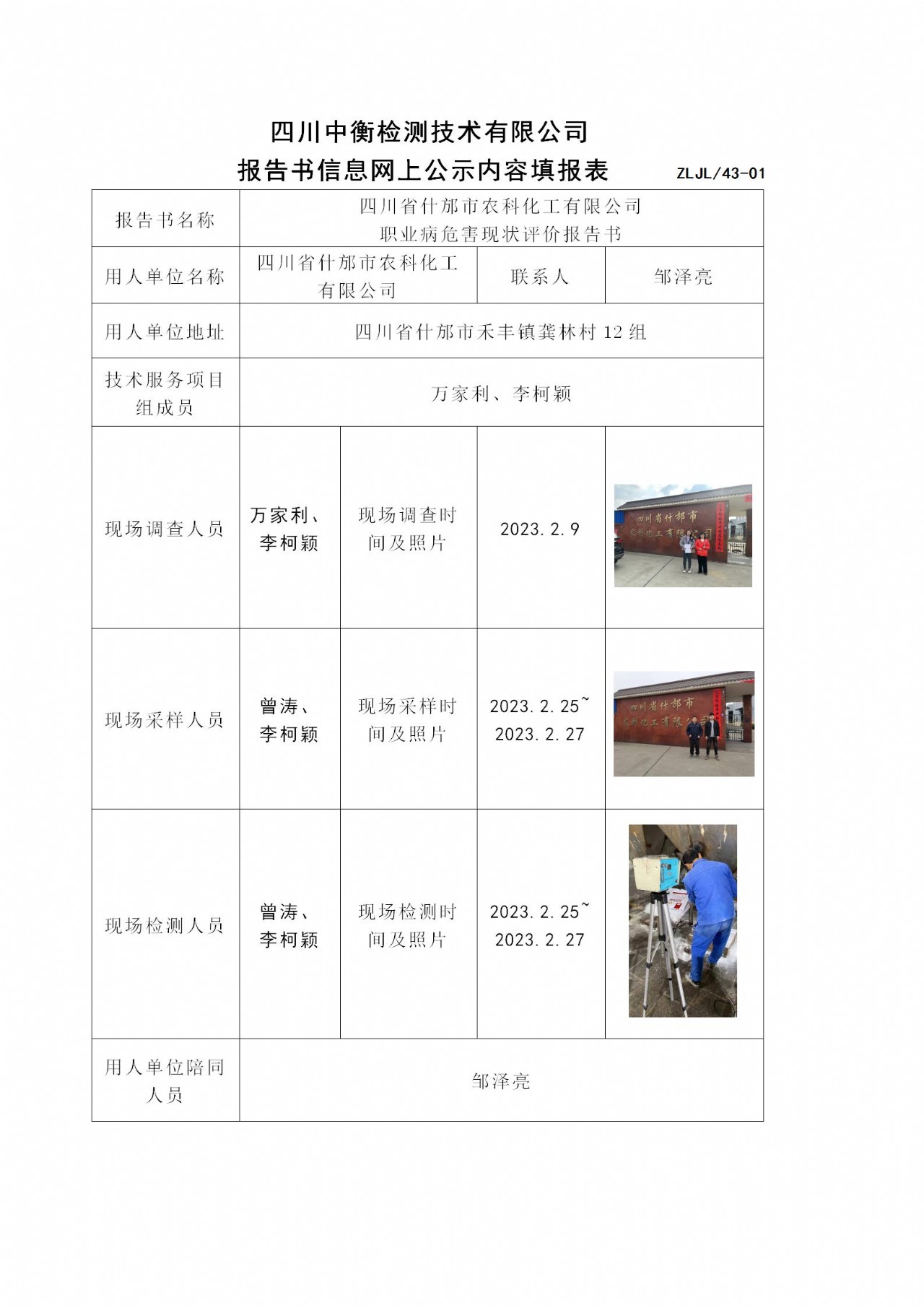 四川省什邡市农科化工有限公司 职业病危害现状评价