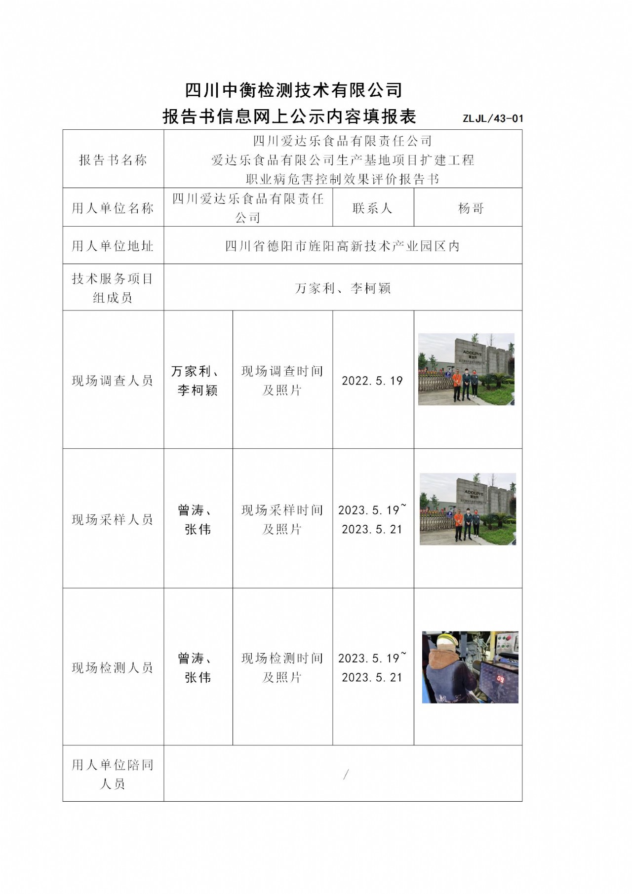四川爱达乐食品有限责任公司 爱达乐食品有限公司生产基地项目扩建工程