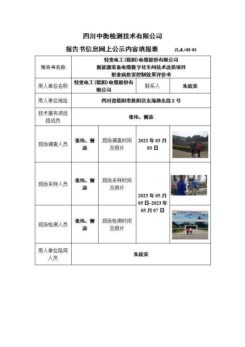 特变电工(德阳)电缆股份有限公司“新能源装备电缆数字化车间技术改造项目”职业病危害控制效果评价