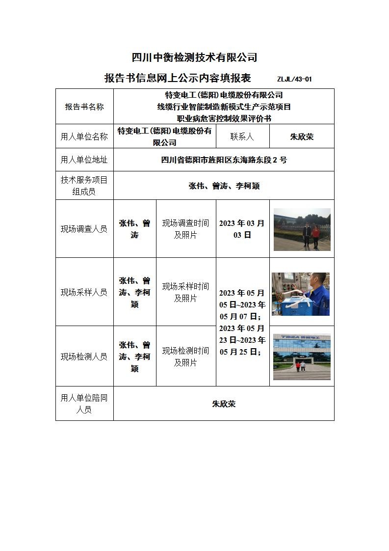 特变电工(德阳)电缆股份有限公司“线缆行业智能制造新模式生产示范项目”职业病危害控制效果评价