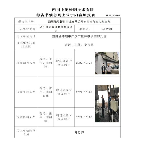 四川迪恩管件制造有限公司定期检测