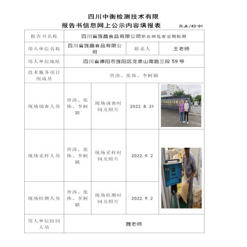 四川省旌晶食品有限公司定期检测