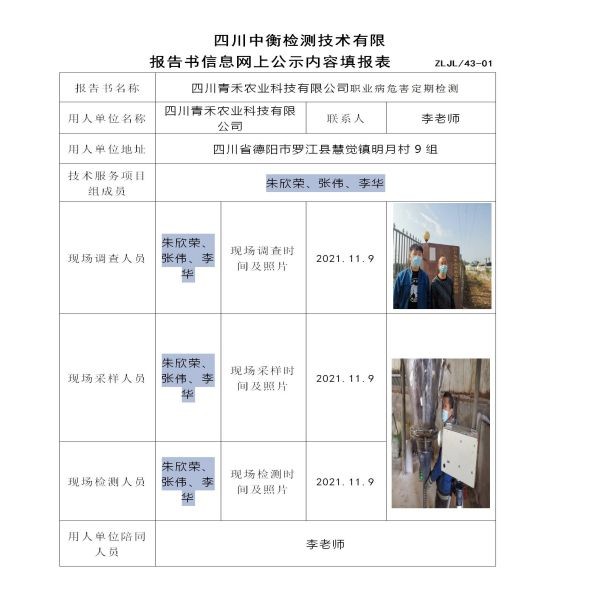 四川青禾农业科技有限公司定期检测