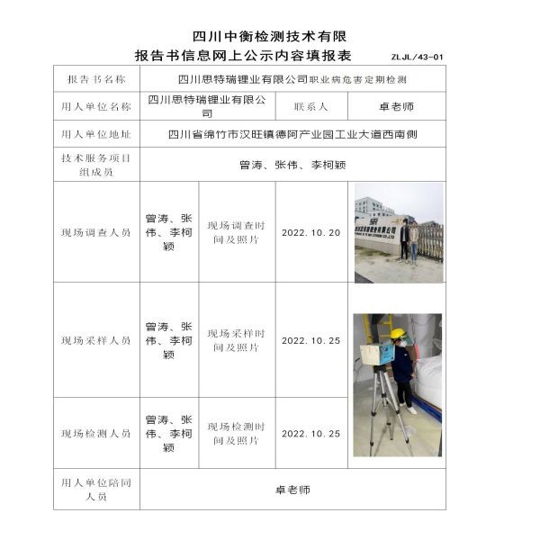 四川思特瑞锂业有限公司定期检测