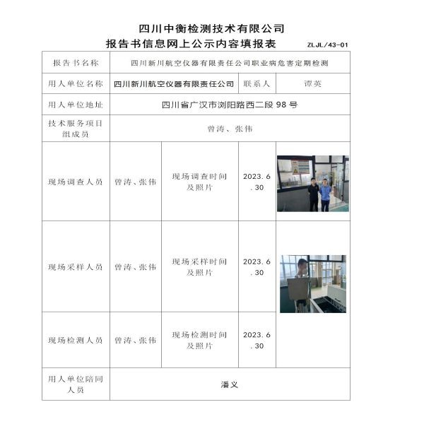 四川新川航空仪器有限责任公司职业病危害定期检测