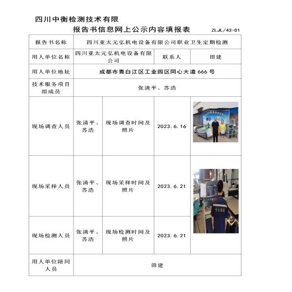 四川亚太元弘机电设备有限公司定期检测