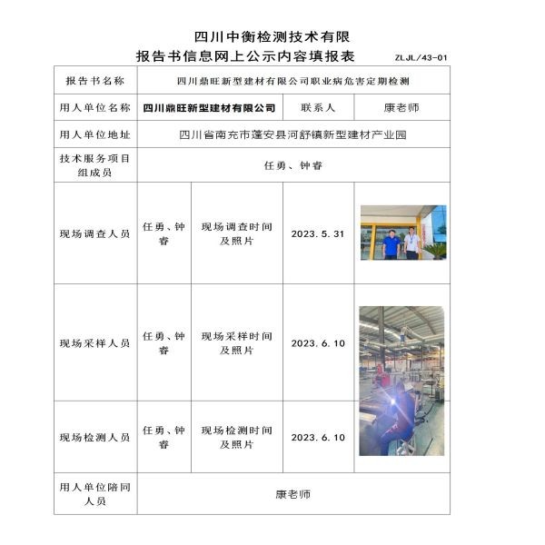 四川鼎旺新型建材有限公司定期检测