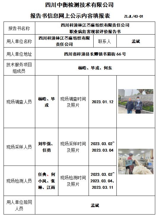 四川梓潼林江苎麻纺织有限责任公司 职业病危害现状评价报告书
