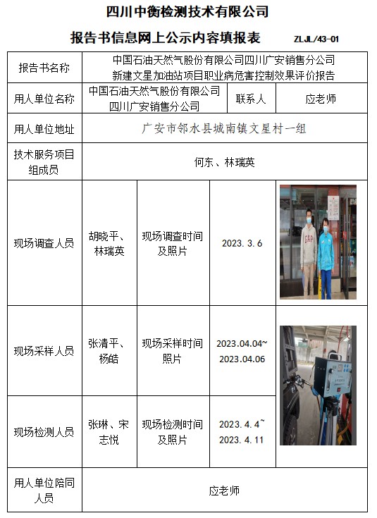 中国石油天然气股份有限公司四川广安销售分公司 新建文星加油站项目职业病危害控制效果评价报告