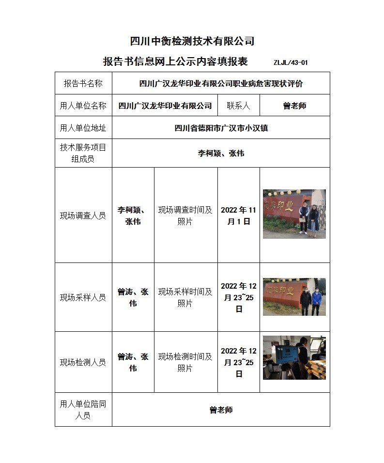 四川广汉龙华印业有限公司 职业病危害现状评价