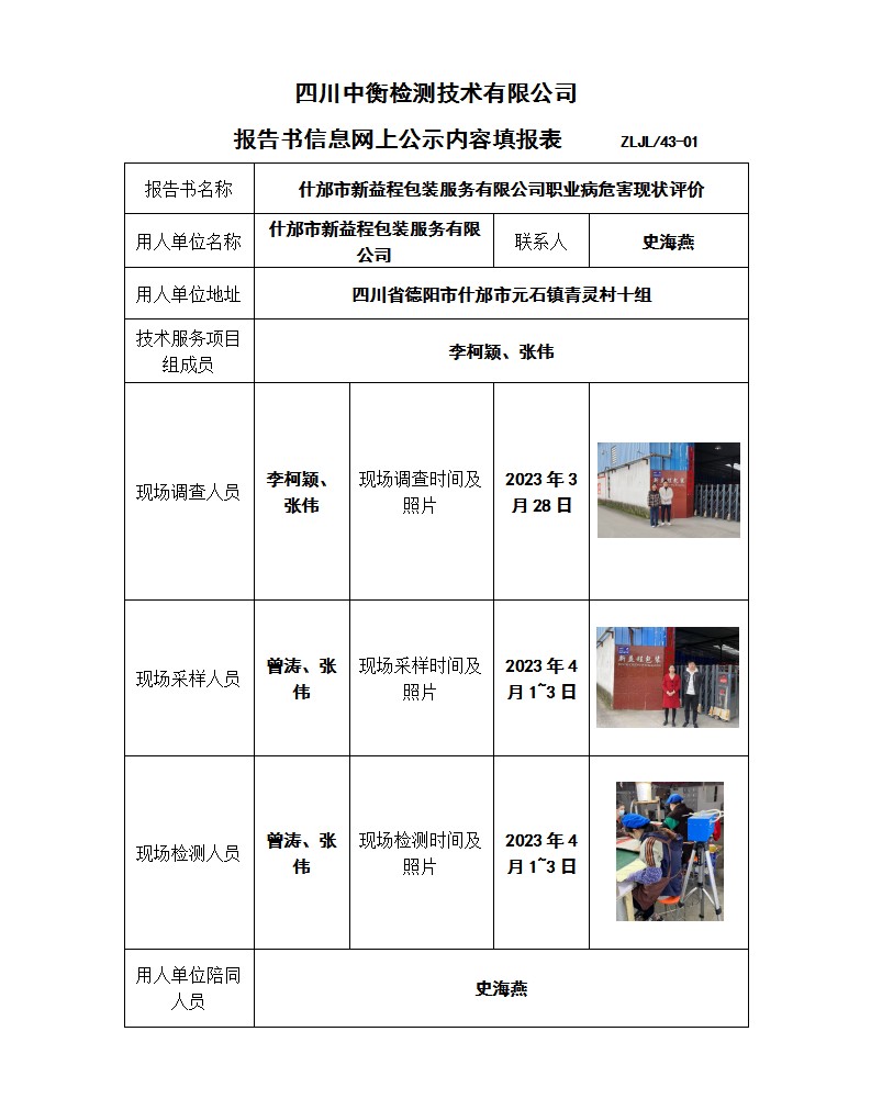 什邡市新益程包装服务有限公司 职业病危害现状评价报告
