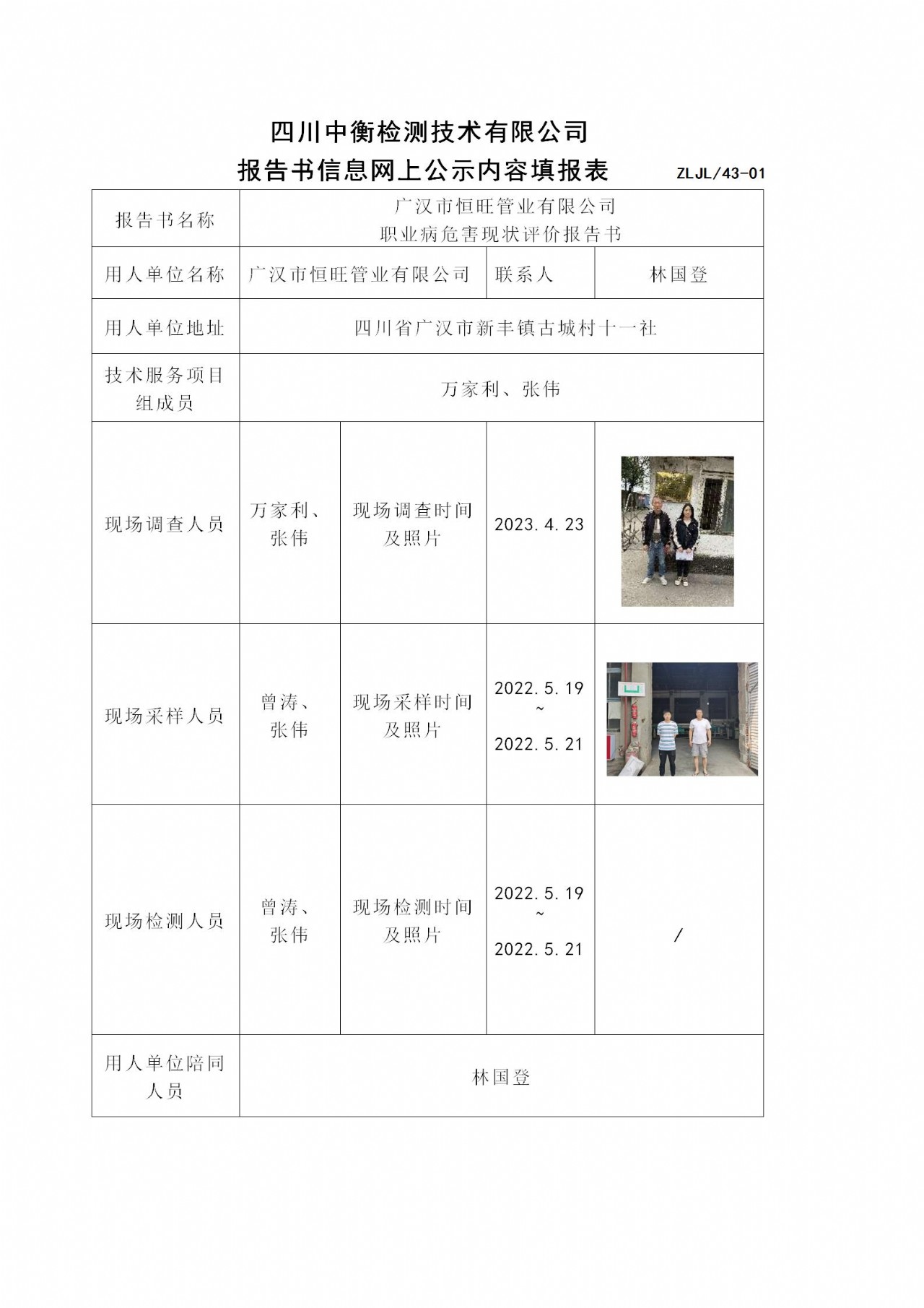广汉市恒旺管业有限公司 职业病危害现状评价