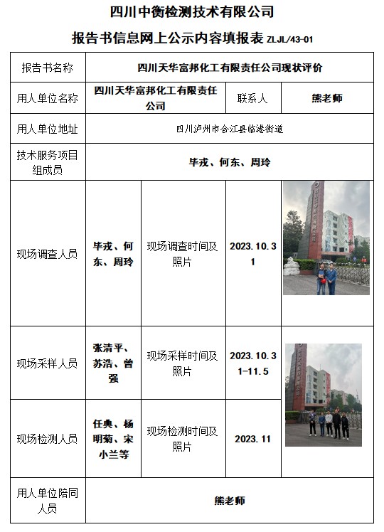四川天华富邦化工有限责任公司现状评价