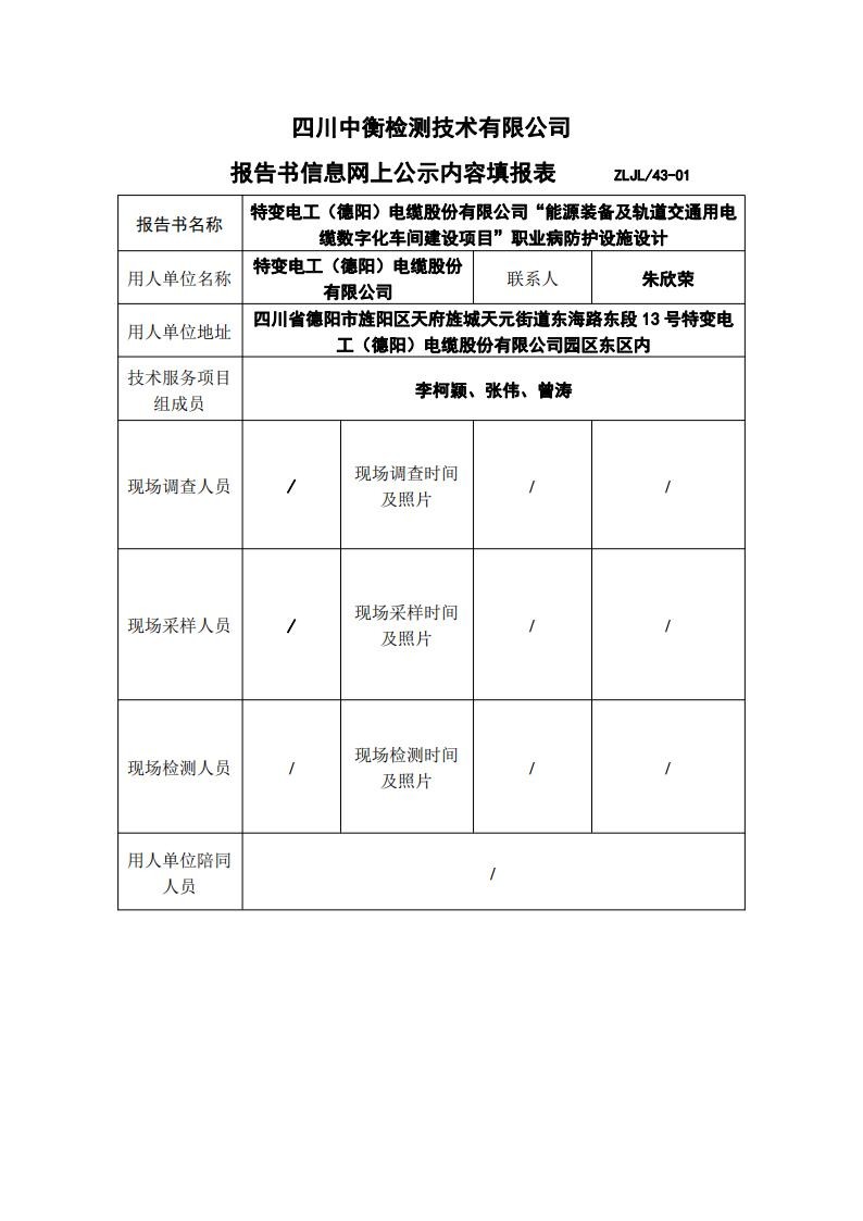 特变电工(德阳)电缆股份有限公司“能源装备及轨道交通用电缆数字化车间建设项目”职业病防护设施设计