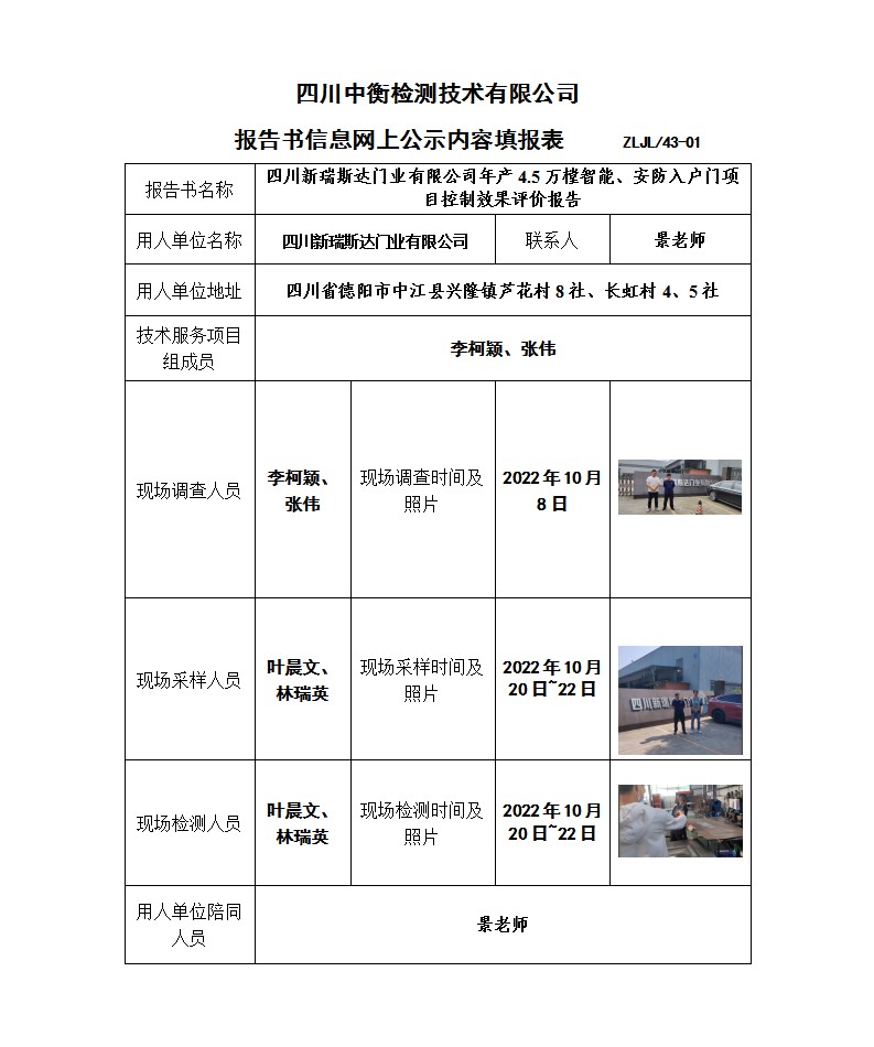 四川新瑞斯达门业有限公司控制效果评价