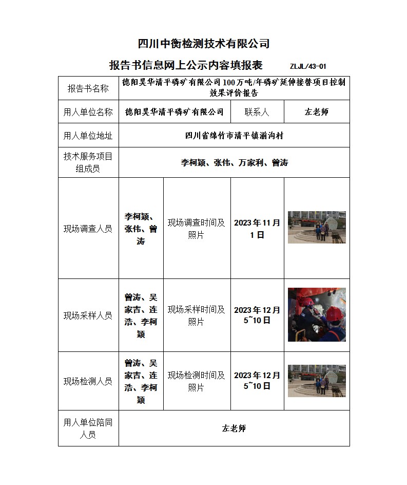 德阳昊华清平磷矿有限公司100万吨/年磷矿延伸接替项目控制效果评价报告