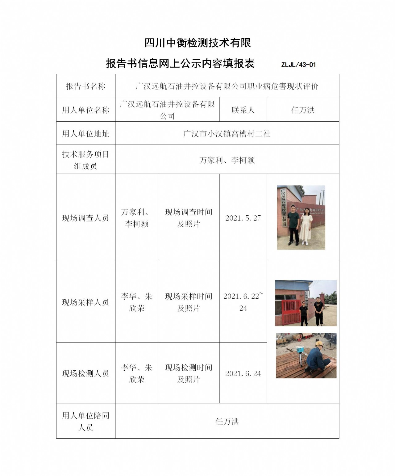 广汉远航石油井控设备有限公司职业病危害现状评价