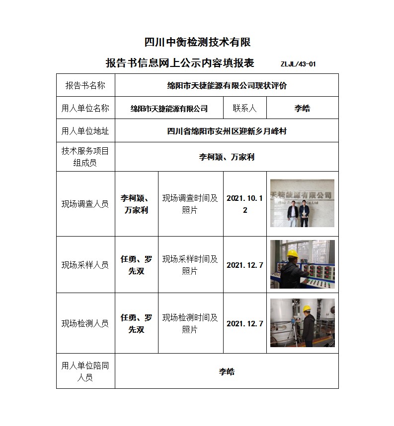 绵阳市天捷能源有限公司现状评价