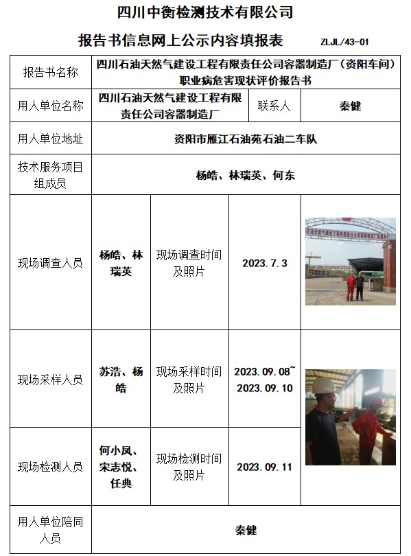 四川石油天然气建设工程有限责任公司容器制造厂(资阳车间)职业病危害现状评价报告书