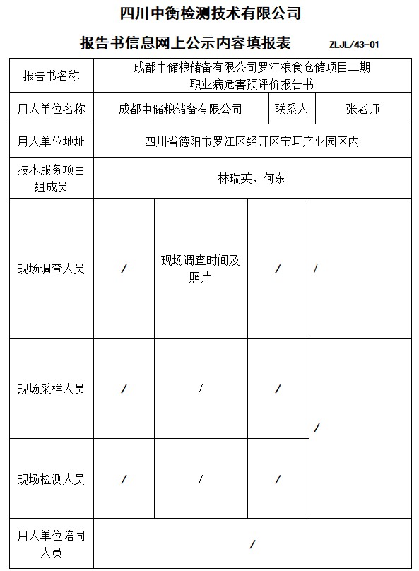 成都中储粮储备有限公司罗江粮食仓储项目二期 职业病危害预评价报告书
