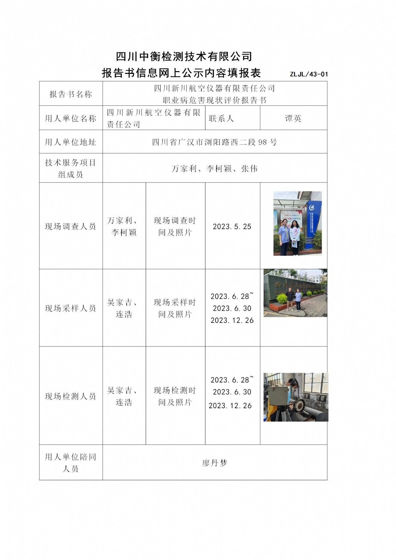 四川新川航空仪器有限责任公司 职业病危害现状评价