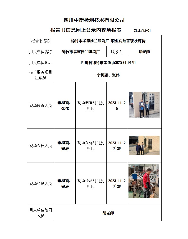 绵竹市孝德桂兰印刷厂 职业病危害现状评价