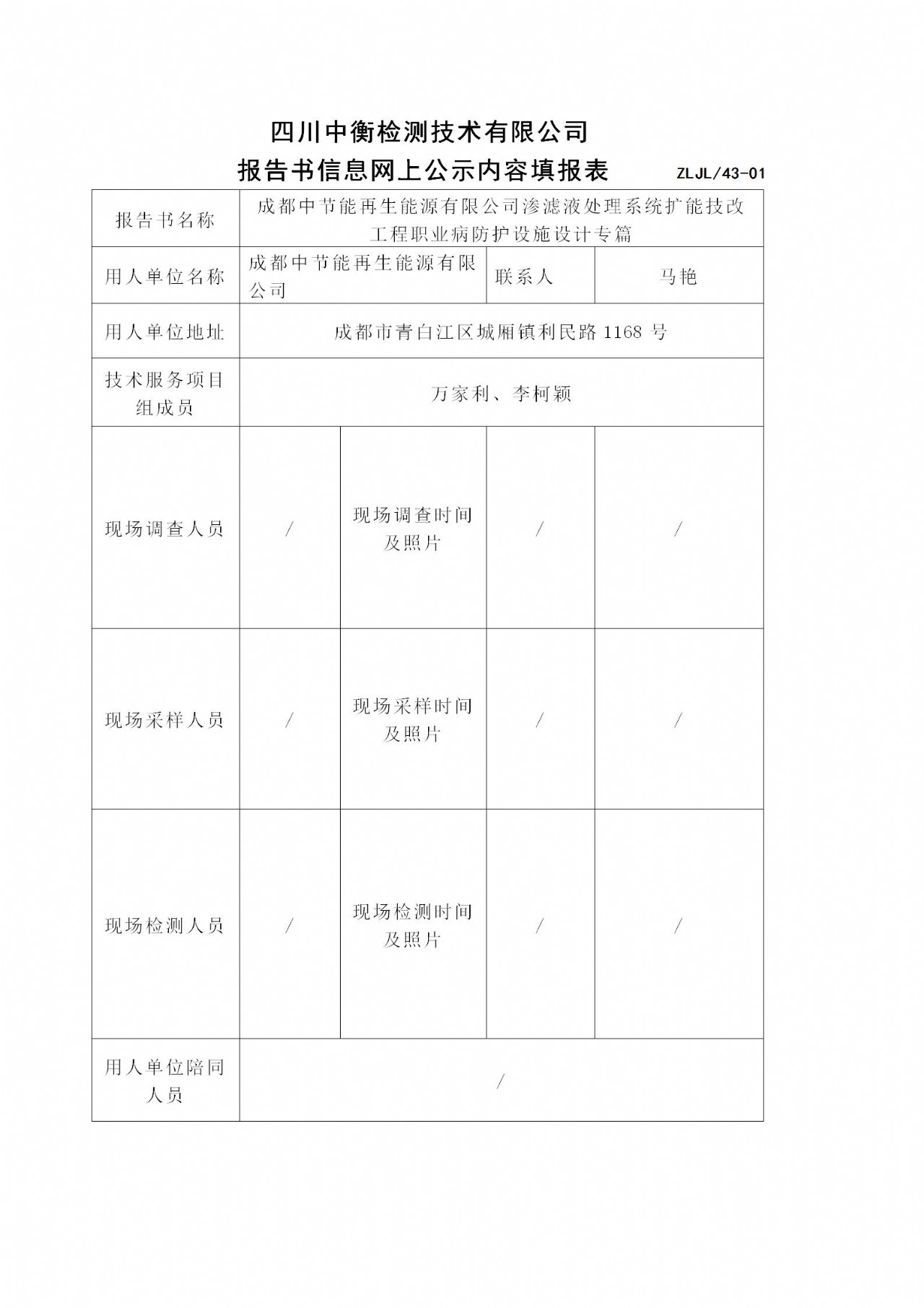 成都中节能再生能源有限公司渗滤液处理系统扩能技改工程职业病防护设施设计专篇