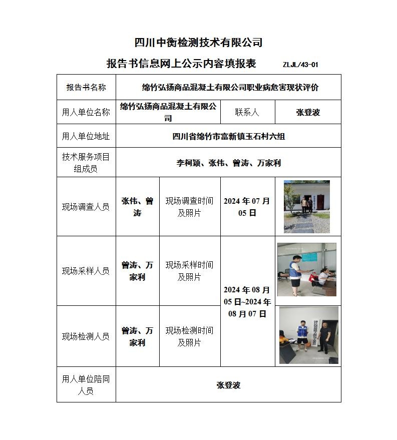 绵竹弘扬商品混凝土有限公司职业病危害现状评价