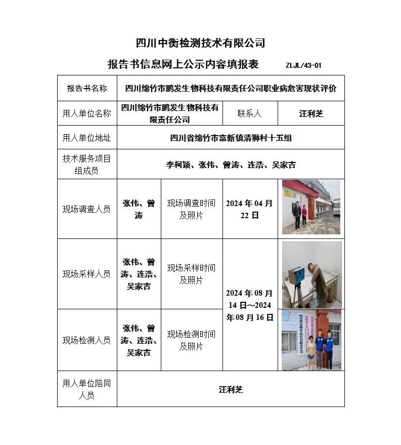 四川绵竹市鹏发生物科技有限责任公司职业病危害现状评价