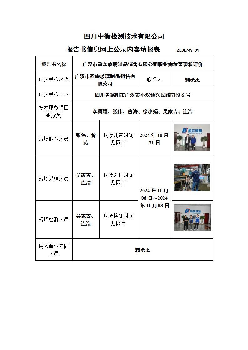 广汉市盈森玻璃制品销售有限公司职业病危害现状评价