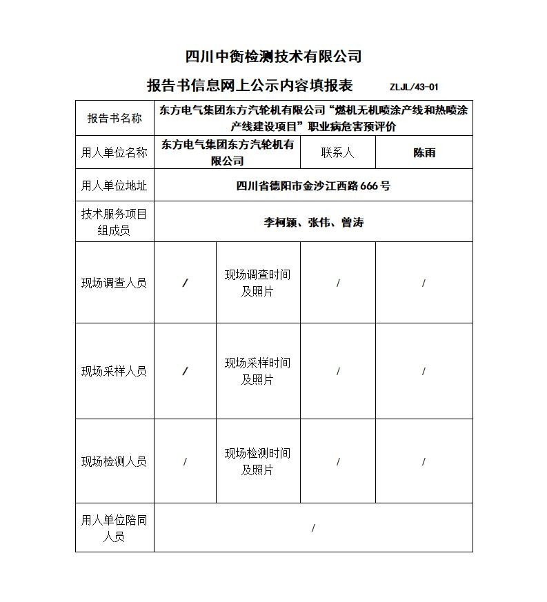 东方电气集团东方汽轮机有限公司“燃机无机喷涂产线和热喷涂产线建设项目”职业病危害预评价